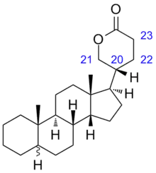 Bufanolide is a C24 steroid and, indirectly, a parent structure of bufadienolide. Its derivatives was found in Bufo and Scilla, as an aglycone of cardiac glycosides and is usually toxic.[1]