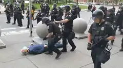 On June 4, 2020, amid the George Floyd protests in New York state, police officers from the Buffalo Police Department pushed 75-year-old Martin Gugino during a confrontation in Buffalo's Niagara Square, causing him to fall to the ground which left him bleeding from the ear.[1] Gugino was seriously injured, sustaining a brain injury, and was still unable to walk nearly two weeks later.[2][3][4] He was hospitalized for nearly four weeks.[5]