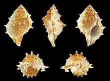 | Five views of a shell of Bufonaria perelegans | |