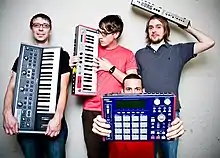 The band met while working together in the production department at a television station in Austin.[1] After winning a Battle of the Bands competition, they used the prize money to record their first EP, "NOISE."[2] Recorded during the summer months of 2007 at Music Lab Recording Studio in Austin Texas, "NOISE" is 7 powerpop songs about girls, teenage hope, dorks, NASA engineers, and robots.[3]