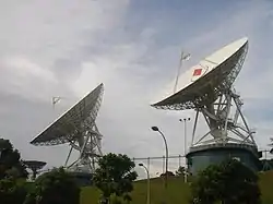 The Bukit Timah Satellite Earth Station (Chinese: 武吉知马卫星地面站; Malay: Stesen Satelit Bumi Bukit Timah) is the second satellite earth station in Singapore after Sentosa Satellite Earth Station in Sentosa Island. The station is located in Bukit Timah near Chantek flyover between Bukit Timah Expressway (BKE) and Pan Island Expressway (PIE). This station is managed and owned by Singtel with the building starting construction in 1983 and started operations in 1986.[1] As it is located next to the BKE, motorists coming into Singapore via the causeway see this as their first landmark other than Woodlands.