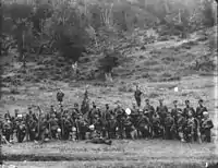 The modern Bulgarian military dates back to 1878. On 22 July 1878 (10 July O.S.) a total of 12 battalions of opalchentsi who participated in the Liberation war, formed the Bulgarian armed forces.[5] According to the Tarnovo Constitution, all men between 21 and 40 years of age were eligible for military service. In 1883 the military was reorganised in four infantry brigades (in Sofia, Pleven, Ruse and Shumen) and one cavalry brigade.