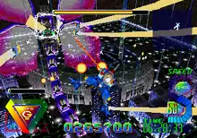 A notable gameplay feature is the Manageable Intelligent Support System (M.I.S.S.); on every stage, a female navigator is hidden in certain areas and after being recruited by the players, each one provides their own special abilities.[4][6] Each navigator players bring alongside during stages gain experience points that are separate from the score and for experience points gained, they are leveled up, altering the game's ending.[4][6] Players initially take control of the main character at the start, while extra M.I.S.S. navigators are recruited through gameplay and any of them can be switched to between missions:[4][6][7]
