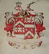 - arms: gules, a chevron between three bull's heads cabossed argent, armed or.