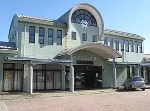 The station consists of two side platforms serving two tracks at grade with a siding. The station building is two-storey modern structure which also houses a local community centre. Access to the opposite side platform is by means of a level crossing. The station is unstaffed by JR Kyushu but some types of tickets are available from the ticket window which is staffed by a kan'i itaku agent.[2][3][4]