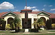 Burdekin Shire Council Chambers is a substantial brick building occupying a prominent corner position, and makes an important aesthetic contribution to the Ayr townscape.[1]