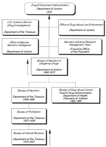 It was created by ยง 3 of the Reorganization Plan No. 1 of 1968, submitted to Congress on 7 February 1968 and effective 8 April 1968.[1] It was formed as a subsidiary of the United States Department of Justice, combining the Bureau of Narcotics (from the United States Department of the Treasury) and Bureau of Drug Abuse Control (from the United States Department of Health, Education, and Welfare's Food and Drug Administration) into one agency.