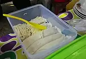 | Main ingredients | Folded pancake made from rice flour, served in savoury coconut milk-based soup, often flavoured with fish, sprinkled with crispy fried shallot |
