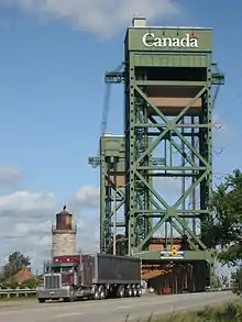 Built in 1962, the 116-metre-long (381 ft) bridge is the sixth bridge to span the Burlington Canal since 1830.[1] The bridge allows vessels to enter and exit from Hamilton Harbour into Lake Ontario. The bridge does not lift during the winter months (January to late March).