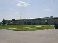 The campus consists of two buildings, the two-story main building, and the single-story industrial arts building, one outdoor classroom, a running track, a football practice field, a softball field, one baseball field, and an indoor swimming pool. The two-story main building, which houses all of the classes but the standard shop classes, is built in a U-shape, with the cafeteria located in the center of the building, the gym, music rooms, band rooms, all sports facilities are located in the left wing, and the main classrooms are in the right wing. The current building is the third building the school has occupied since it opened; the first building stands as the current district maintenance shops, and the second building sits on a hill only two blocks from the original building. It has been unoccupied since 1996.