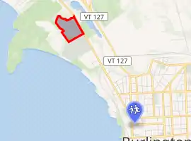 On March 4, 2021 a temporary campus opened in a former Macy's in Downtown Burlington, with the school district leasing the property for 3 1/2 years;[5] as of that period all classes are taught at this location.[6] The department store had closed in 2018, and $3.5 million was spent to renovate it, with the State of Vermont contributing. The warehouse and china department were retrofitted into being a gymnasium and a library, respectively. The classroom walls do not meet the ceiling. The campus is 2 miles (3.2 km) from the permanent one.[5]