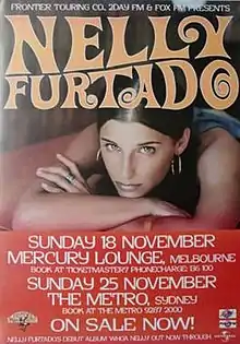 - "NELLY FURTADO - AUSTRALIA & NEW ZEALAND". Frontier Touring Company. November 2001. Archived from the original on April 22, 2019. Retrieved April 11, 2019.