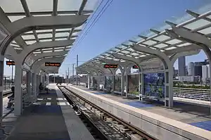 The Burnett Transit Center is an elevated light rail station on the METRORail Red Line in Houston, Texas, United States. It was built as part of the North/Red Line Extension, and opened on December 21, 2013.[1]