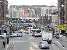 The Burnside Avenue station is an express station on the IRT Jerome Avenue Line of the New York City Subway. Located at the intersection of Burnside and Jerome Avenues in the Bronx, it is served by the 4 train at all times. It also serves as a rush hour short turn northern terminal for select 4 trains from Crown Heights–Utica Avenue.[6]