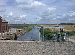The Brandon site was finally abandoned in the 1950s. The White House drain, which supplied it, had become steadily deeper as the land surface had sunk, and the soil through which it ran was unstable, requiring regular maintenance to prevent slippage. The pumping station was effectively on top of a hill, rather than being at the lowest part of the Fen, and so a decision was taken to construct a new pumping station at Whitehall on the River Great Ouse, which required the construction of 1.25 miles (2 km) of main pumping drain, to connect it to the existing drains. Two 210 brake horsepower (160 kW) electric motors with vertical spindle axial flow pumps were supplied by W. H. Allen Sons and Company Ltd, and the station was opened on 10 September 1958.[30]
