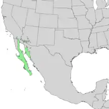 A few individuals can be found in the Fish Creek Badlands of Anza-Borrego Desert State Park, in a location between the Vallecito Mountains and Ocotillo Wells. This small population represents the northernmost extent of the distribution of this species.[7]