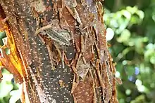 The gumbo-limbo is referred to, humorously, as the tourist tree because the tree's bark is red and peeling, like the skin of the sunburnt tourists who are a common sight in the plant's range.[7]