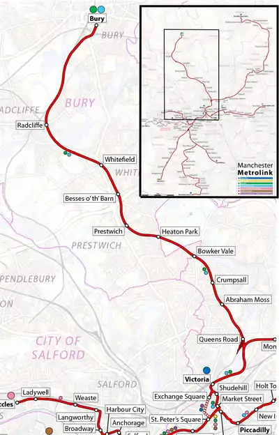 | Termini | Manchester Victoria Bury Interchange | ||||||||||||||||||||||||||||||||||||||||||||||||||||||||||||||||||||||||||||||||||||||||||||||||||||||||||||||||||||||||||||||||||||||||||||||||||||||||