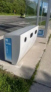 The construction may include small inbuilt seats. The construction may feature advertising, from simple posters, to complex illuminated, changeable or animated displays. Some installations have also included interactive advertising. Advertising may be the primary reason for the shelter and the advertising pays for the bus shelter.[4] Design and construction may be uniform to reflect a large corporate or local authority provider, or installations may be more personal or distinctive where a small local authority such as a parish council is responsible for the stop. The stop may include separate street furniture such as a bench, lighting and a trash receptacle.