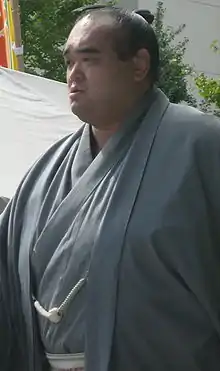 Bushūyama Takashi (武州山 隆士, born May 21, 1976) is a Japanese former sumo wrestler from Aomori, Aomori Prefecture. He made his professional debut in January 1999. At the age of 32, he was promoted to the top makuuchi division in the November 2008 tournament. His highest rank was maegashira 3. He is now a sumo coach.