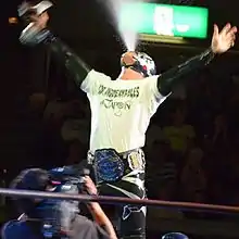 Bushi was set to wrestle his return match on August 16, 2015, but the match had to be postponed, after he broke the orbital floor in his right eye while training.[33] Bushi's comeback was postponed until November 21, 2015.[34] However, on November 20, New Japan announced they had pulled Bushi from his return match due to being unable to get into contact with him.[35] However, the following day this was revealed to be a storyline as Bushi accompanied Tetsuya Naito and Evil to their match, joining their villainous Los Ingobernables de Japón (L.I.J.) stable in the process.[36] On December 9, Bushi attacked Máscara Dorada after he refused to join L.I.J., ripped off his mask and stole the CMLL World Welterweight Championship belt, setting up a future title match between the two.[37] On December 19, Bushi defeated Dorada with help from Evil to become the new CMLL World Welterweight Champion.[38]