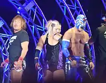 On January 4, 2017, at Wrestle Kingdom 11 in Tokyo Dome, Bushi, Evil and Sanada won a four-team gauntlet match to become the new NEVER Openweight 6-Man Tag Team Champions.[45] They lost the title to Taguchi Japan (Hiroshi Tanahashi, Manabu Nakanishi and Ryusuke Taguchi) the next day,[46] before regaining it on February 11 at The New Beginning in Osaka.[47] They lost the title to Taguchi Japan (Tanahashi, Taguchi and Ricochet) in their second defense on April 4,[48] before regaining it on May 3 at Wrestling Dontaku 2017.[49] Bushi then entered the 2017 Best of the Super Juniors, where he finished with a record of four wins and three losses, same as block winner Kushida, but failed to advance to the final due to losing to Kushida in their head-to-head match.[50] Kushida would win the tournament and the IWGP Junior Heavyweight Championship, and Bushi was his first challenger. Bushi unsuccessfully challenged for the belt on June 27.[51][52] In late 2017, Bushi started teaming with L.I.J. stablemate Hiromu Takahashi in NJPW's junior tag team division, participating in the 2017 Super Junior Tag Tournament.[53][54] They were eliminated in the semi-finals by eventual winners Roppongi 3K (Sho and Yoh).[55] On December 17, Bushi, Evil and Sanada lost the NEVER Openweight 6-Man Tag Team Championship to Bullet Club's Bad Luck Fale, Tama Tonga and Tanga Loa in their fourth defense.[56]