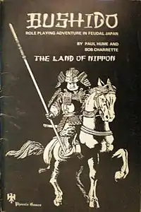 Bushido is a Samurai role-playing game set in Feudal Japan, originally designed by Robert N. Charrette and Paul R. Hume[1] and published originally by Tyr Games, then Phoenix Games, and subsequently by Fantasy Games Unlimited. The setting for the game is a land called Nippon, and characters adventure in this heroic, mythic, and fantastic analogue of Japan's past.