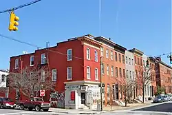 As its name suggests, Butchers Hill was once home to butchers and poultry preparers, many who were German American and Jewish American. It was a village prior to the Civil War. Although today it is considered to be less affluent than Fells Point, it was once the more prosperous community of the two. This is reflected in the larger size of the rowhouses. Butchers Hill is in proximity to more gentrified sections of Fells Point, the draw of Patterson Park, and the employment center on Johns Hopkins Hospital. Many artists reside in the neighborhood. A portion of it is a historic district listed on the National Register of Historic Places.[2]
