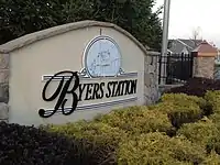 Byers Station Historic District is a national historic district located in Upper Uwchlan Township, Chester County, Pennsylvania. The district includes 26 contributing buildings in the crossroads community of Byers Station. The buildings date to the 19th century and include a number of notable Italianate style buildings. Notable buildings include a variety of residences, a factory, a Masonic lodge (1894), and the former Byers Hotel (c. 1874). The community grew around the Byers railroad station, after its opening in 1871, and continued after plumbago (graphite) was discovered in the area in 1875.[2]