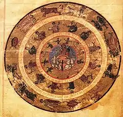 While iconoclasm severely restricted the role of religious art, and led to the removal of some earlier apse mosaics and (possibly) the sporadic destruction of portable icons, it never constituted a total ban on the production of figural art. Ample literary sources indicate that secular art (i.e. hunting scenes and depictions of the games in the hippodrome) continued to be produced,[56] and the few monuments that can be securely dated to the period (most notably the manuscript of Ptolemy's "Handy Tables" today held by the Vatican[57]) demonstrate that metropolitan artists maintained a high quality of production.[58]