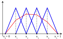 of the interval and let be the space of all continuous functions that are affine on each subinterval in the partition (such functions are called piecewise-linear). In addition, assume that any function in takes the value 0 at the endpoints of It follows that is a vector subspace of whose dimension is (the number of points in the partition that are not endpoints).
