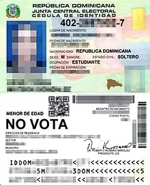 | Dominican identity card (Cédula de identidad y electoral) | |