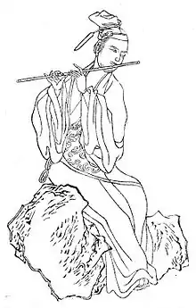 The ci form developed in the late Tang dynasty (also known as T'ang). Although the contributions of Li Bai (701 – 762) are fraught with historical doubt, certainly the Tang poet Wen Tingyun (812–870) was a great master of the ci, writing it in its distinct and mature form.[2] One of the more notable practitioners and developers of this form was Li Yu of the Southern Tang dynasty, during the Five Dynasties and Ten Kingdoms period, subsequent to Tang. Before the ci form was formalized by the scholarly, it's antecedents had grown up in a setting of popular music. Serindian influences were particularly important in this regard; with the influence of Kucha drum dance tunes being the most important.[3] Much of the process of importing Serindian influence into Classical Chinese poetry was mediated through the short-lived state of Western Liang (555–587). Western Liang was basically a city-state centered on the city known in Tang times as Liangzhou. In Western Liang a musical hybrid of Chinese and Kuchean traditions developed, and became popularized throughout the Tang culture, from the people to even the emperor Xuanzong (reigned 713-756).[4] This was part of a larger movement: "...of all the specialists of ambiguous socal status who were sent to China by a foreign government, the most popular and influential were the musicians―instrumentalists, singers, and dancers―and the instruments and musical modes that they brought with them....For many centuries, the music of the West had had its admirers in China, but under the Sui [581-618] emperors there was a great vogue for it, which continued into T'ang times."[5] Foreign music (in terms of performers, instruments, musical modes, and songs) was brought to China, often as a result of wars of conquest or as a type of "tribute" and this music found a place in informal settings at the imperial court to other less reputable settings.[6] Ci poetry largely developed during the late Tang from the music made in popular settings such as houses of pleasure and from the inclusion of romantic and erotic themes of late Tang poets such as Li Shangyin.[7][8]