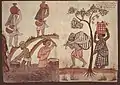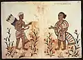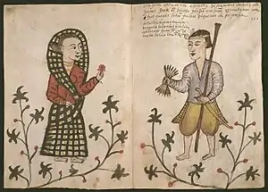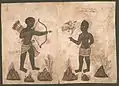 The codex consists of seventy-six watercolour illustrations, one of which is a later addition. Most come with a short description, and include illustrations of people from east Africa, Arabia, Persia, Afghanistan, India, Ceylon, Malaysia, China and the Moluccas, as well as some insights into fauna, flora and certain traditions, such as the Hindu religion - previously unknown in Europe. The creator has not been identified and many hypotheses have proven inconclusive.[1][2][3] Several of its inscriptions provide information as to the date it was made, namely the allusion to the Siege of Diu of 1538, but the absence of any mention of the Japanese, whom the Portuguese contacted in 1541-43.[2] It is therefore possible it was made circa 1540.[4]