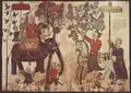 "Single Christian women of India" wearing European fashion, and a Portuguese nobleman, presumably proposing marriage.