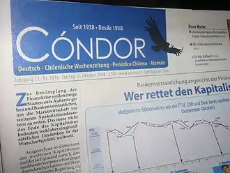 Cóndor is a weekly German-language newspaper published in Santiago, Chile. The scope of the publication focuses on matters of interest to the German Chilean community.