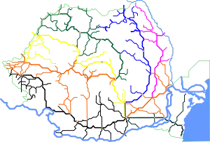 The nine main lines owned by the Romanian national rail transport company Căile Ferate Române represent the most circulated lines in Romania. CFR's entire rail networks has 13,807 km (8,579 mi) and with the 6,923 km (4,302 mi)[1] of rail lines in railway stations has a total network of 20,730 km (12,880 mi).