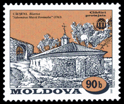 The 17th century Assumption of Our Lady Church is the oldest surviving building in the town.[3] It is set more than 3 feet (0.91 m) below ground level and preserves the only medieval fresco in the Republic of Moldova. Executed by Walachian painters in a late Byzantine-Romanian style, the interiors feature religious scenes and iconography in vibrant reds, gold, and blues.
