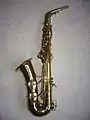 A straight-necked Conn C melody saxophone (New Wonder Series 1)[14] dated 1922. The neck has a Conn micro-tuner on the end.