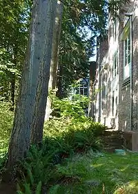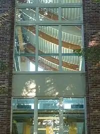 The C. K. Choi Building is a building known for its sustainable design features.[1][2] It is the University of British Columbia's "flagship environmental building"[3] in what it calls its 'living laboratory', the campus used to showcase "innovative approaches to conserving energy, water and materials, while striving to make positive impacts on the environment."[4][5] Located in the northwest quadrant of the UBC campus, the building is named after Dr. Cheung-Kok Choi, a businessman and philanthropist in China, Hong Kong and Canada, and a major donor to UBC.[6][7] The C.K. Choi Building was purpose-built as a university office building to house UBC's Institute of Asian Research's five research centres. These focus on China, Japan, Korea, Southeast Asia, and India and South Asia. The "daringly innovative architecture"[8] integrates cultural expression, interior and exterior architectural presence, together with environmental features and functions. The five identical curved roof forms reflect the institute's Asian focus, providing an identifiable focus for each research centre without giving predominance to one culture or centre over another, and provide natural light and natural ventilation to interior spaces.[9]