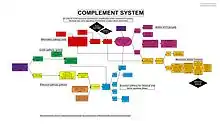 Both enzymes, C4b2b3b and C3bBbC3b, are unstable and undergo decay dissociation with a half-life at 37 °C of approximately 1.5 - 3 min.[1] The properdin stabilizes the alternative pathway C5 convertase of which half-life is at 37 °C 10 - 34 min.[2][3] In contrast, the fluid phase C5 convertase CVFBb is stable (half-life at 37 °C = 7 h).[8] The oxidation of C2 protein stabilizes the C4b2boxy complex.[9] The Factor H–related protein 1 (FHR1) has been identified as a novel inhibitor of the complement pathway. FHR1 blocks C5 convertase activity and interferes with C5b surface deposition and membrane attack complex (MAC) formation. Apparently Factor H and FHR1 control complement activation in a sequential manner. In hemolytic uremic syndrome (HUS), the absence of FHR1 may result in reduced inhibition of terminal complex formation and in reduced protection of endothelial cells upon complement attack.[10]