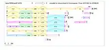 C7orf25 encodes 12 different transcripts. Two of these transcripts are (PSMA2 and UPF0415). No specific phenotypes or polymorphisms are yet to be related to mutations in C7orf25. This suggests that this reading frame is important for survival in vertebrates. The picture below shows all predicted transcripts encoded in C7orf25.[13]