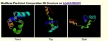 The secondary structure of the gene is predicted to have two stretches of alpha helices and one beta strand. The majority of the secondary structure of gene is random coils.[21]
