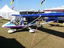 - Single seat, developed to compete in the 1999 European World Air Games. Eight were flying by 2011. It has competition features, including streamlined struts and landing gear legs, no jury struts, a semi-symmetrical airfoil and 3 in (8 cm) extra headroom. Standard empty weight 310 lb (141 kg) with a 625 lb (283 kg) gross weight. Engines available include the two-stroke 40 hp (30 kW) Rotax 447, 52 hp (39 kW) Rotax 503, 65 hp (48 kW) Rotax 582 or the 40 hp (30 kW) Hirth 2702.[6][11]