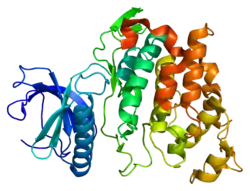 Dual specificity protein kinase CLK3 is an enzyme that in humans is encoded by the CLK3 gene.[5][6] The CLK3 gene encodes a serine/threonine type protein kinase with a non-conserved N-terminal domain. A long and short isoform (phclk3 and pclk3/152) result from alternative splicing and coexist in different tissues. Isoform phclk3/152 lacks the kinase domain.[7]