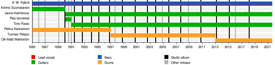 - A. W. Yrjänä – vocals, bass (1985-)