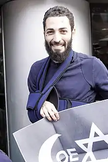 Combo was "savagely beaten" by "four youths" on 30 January 2015 and suffered a dislocated shoulder after he painted a wall at Porte Dorée near Paris with the word "coexist" written with letters created from religious symbols.[3]