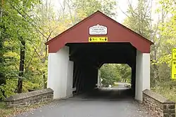 The Cabin Run Covered Bridge is a historic covered bridge located in Point Pleasant, Plumstead Township, Bucks County, Pennsylvania. The bridge was built in 1871, and is 15 feet (4.6 m) wide and has a length of 82 feet (25 m). The Town truss bridge crosses the Cabin Run (creek) downstream from the Loux Covered Bridge.[2][3]