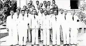 Prior to the Revolution of 1932, the absolutist Chakri kings ruled Siam through a series of "krom" (Thai: กรม) and "senabodi" (Thai: เสนาบดี).[1] On 15 April 1874 King Chulalongkorn founded the King's Privy Council (Thai: สภาที่ปรึกษาในพระองค์) (which still exists today) made up of 49 senior princes and officials. For the first time the kings of Siam exercised his powers through a council.