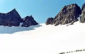 Cache Col is a gap in a high ridge between Magic Mountain and Mix-up Peak. It's located at the highest part of Cache Glacier, on the shared boundary of Skagit County and Chelan County in Washington state. Cache Col is situated south of Cascade Pass on the shared border of North Cascades National Park and Glacier Peak Wilderness. Cache Col and the Cache Glacier are at the northern end of the Ptarmigan Traverse which is mountaineering route that provides access to remote peaks such as Mount Formidable and Dome Peak. Precipitation runoff on the north side of the col drains into the Stehekin River, while precipitation drains into the Cascade River from the south side.